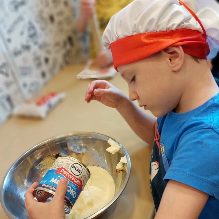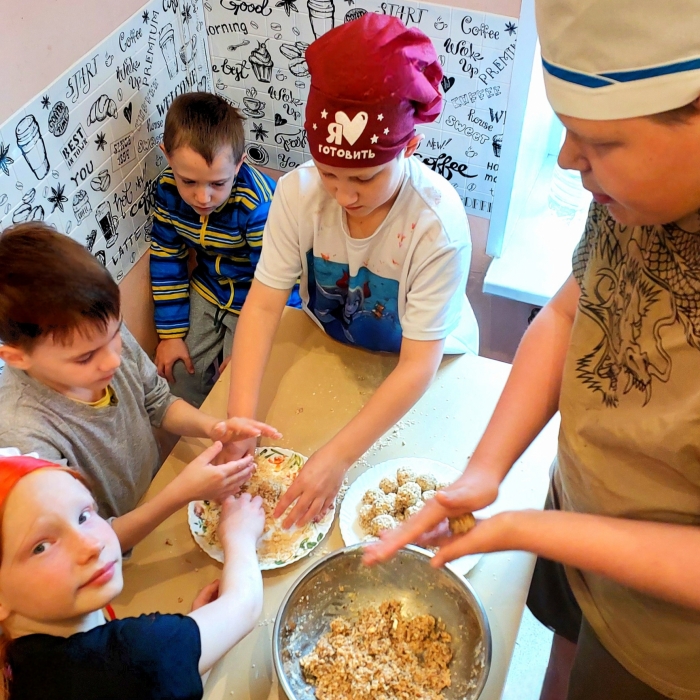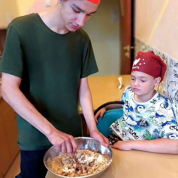 Воспитанники Центра попробовали приготовить домашнее пирожное “Картошка”. И старшие, и младшие ребята активно участвовали в процессе - кто-то измельчал печенье в крошку, кто-то готовил массу - каждому нашлось занятие. Процесс недолгий, приготовили скоро и с огромным удовольствием. Дети все вместе пили чай с пирожными собственного производства.
