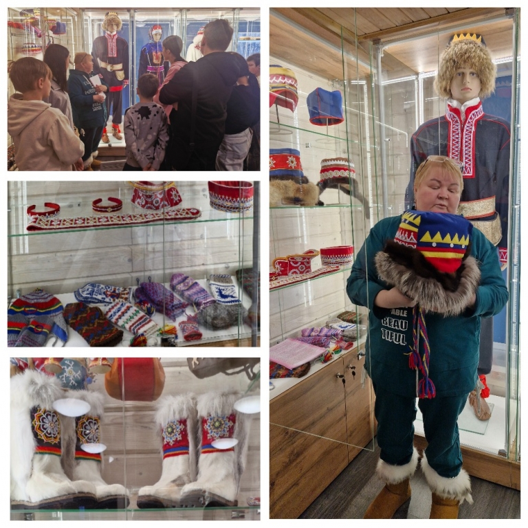 Воспитанники прикоснулись к древнему саамскому искусству, посетив выставку декоративно - прикладного творчества, на которой были представлены работы ведущих мастеров коренных народов севера. Это традиционные саамские костюмы, головные уборы, ремни, пояса, рукавицы, обувь. А также изделия саамских ремесел из рога, дерева и кожи: женские сумочки, кошельки, игольницы.