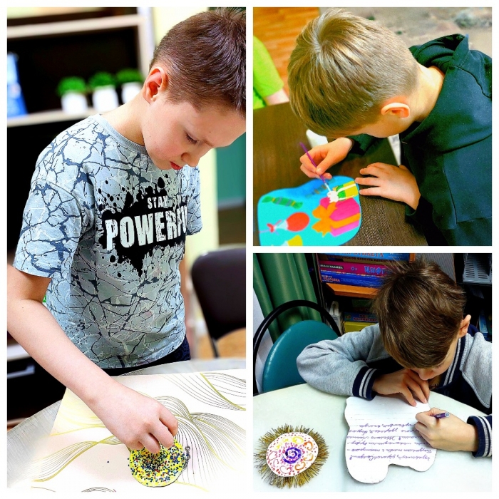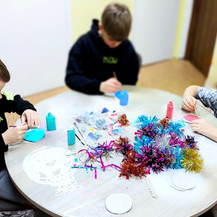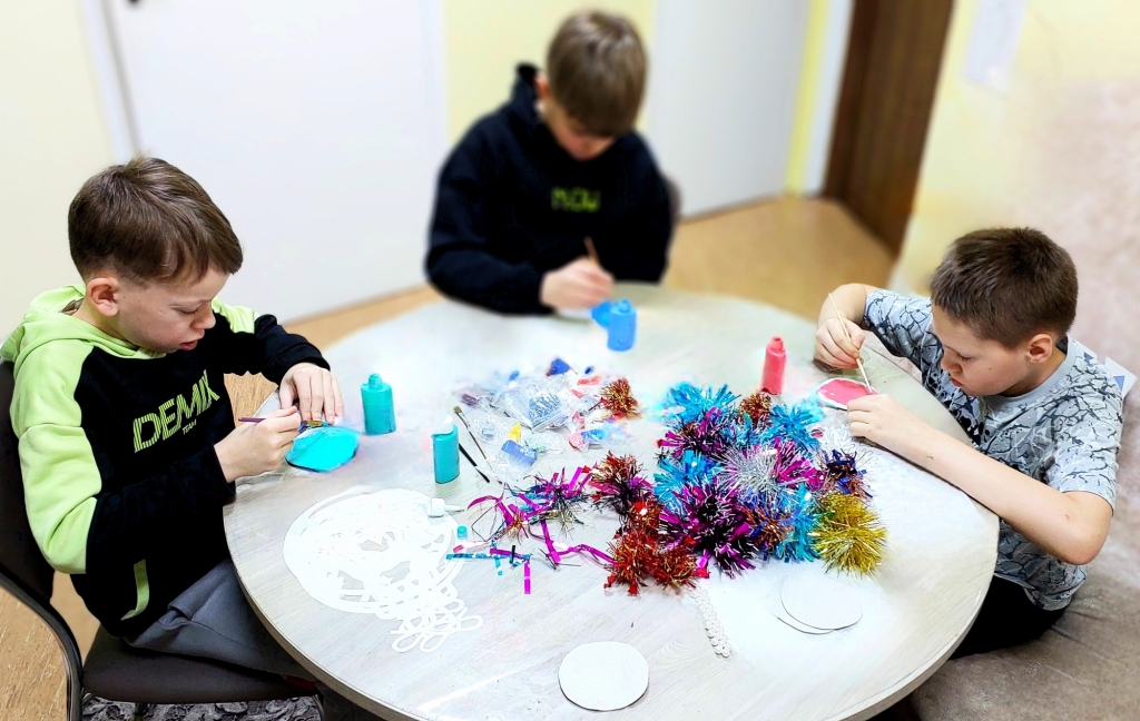 Ребята младшего возраста своими руками изготавливают новогодние сувениры, поздравительные открытки для военнослужащих СВО, находящихся на лечении в Североморском военном госпитале. К подаркам-сувенирам ребята прилагают письма с пожеланиями перед новогодними праздниками. Письма для военнослужащих непростые - с созданными ребятами индивидуальными рисунками каждому защитнику, а еще тёплыми словами с уважением и благодарностью за доблесть и мужество.