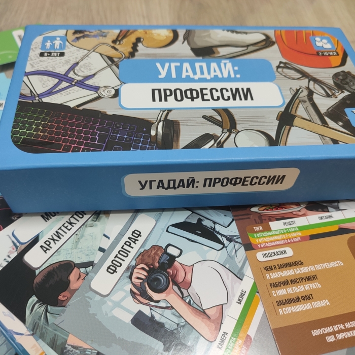 Недавно у нас прошел вечер настольных игр. У старших воспитанников темой вечера стала настольная карточная игра "Угадай: Профессии». В ходе игры ребята вспомнили и закрепили уже имеющиеся знания о профессиях, выявили эмоциональное отношение к разным профессиям, научились выделять профессионально важные качества профессий.