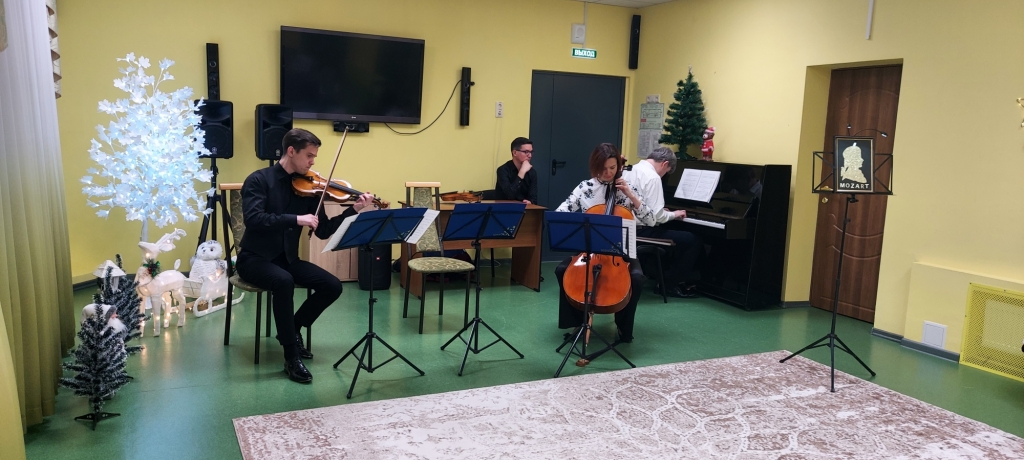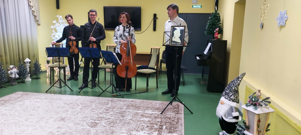 Музыкальная фантазия для двух скрипок, виолончели и фортепиано на музыку Моцарта, познакомила ребят с творчеством одного из величайших композиторов мира. Ребята узнали, каким был в детстве Вольфган, о чём он мечтал и как начал делать свои первые шаги в удивительный мир классической музыки.