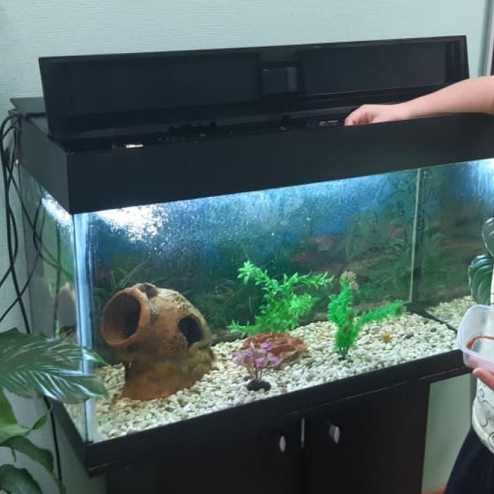 Приобретение новых обитателей стало возможным благодаря спонсорской помощи. На собранные средства был приобретен не только сам аквариум, но и все необходимое для его содержания: фильтр, обогреватель, лампа и, конечно же, корм. Особую благодарность выражаем волонтерам, которые помогли нам с оформлением аквариума.