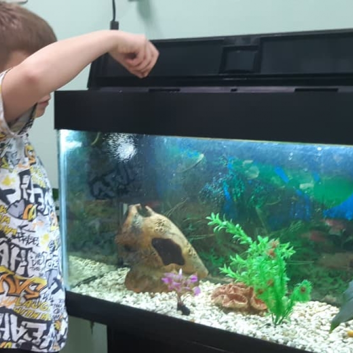В аквариуме 2 группы-семьи произошло долгожданное пополнение – появились шесть маленьких, но очень подвижных рыбок тернеций. Это событие вызвало неподдельный восторг у всех ребят, ведь наблюдение за жизнью аквариумных обитателей – одно из любимых занятий.