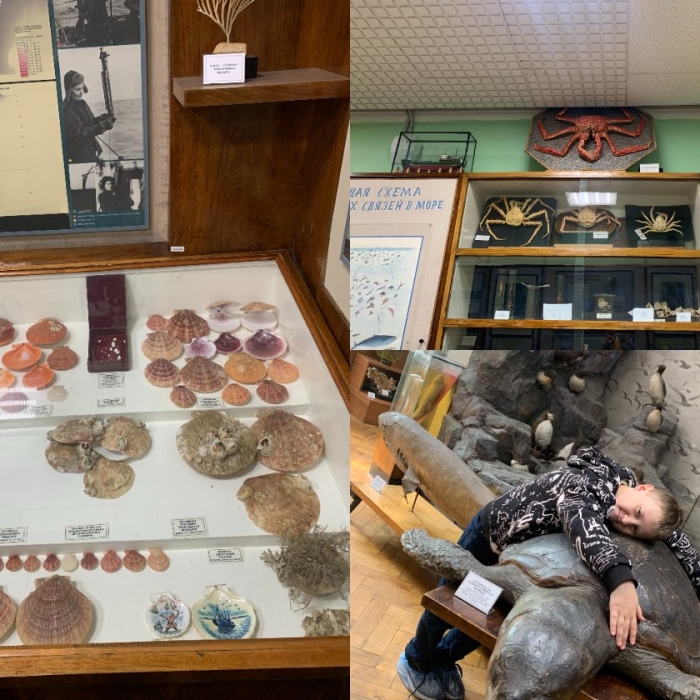 Богатые коллекции музея впечатлили юных посетителей это и уникальные научные приборы для морских исследований, разнообразные коллекции морских обитателей, экспонаты рыб и морских беспозвоночных, коллекции птиц прибрежных зон, образцы морских водорослей.