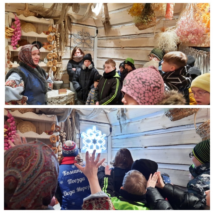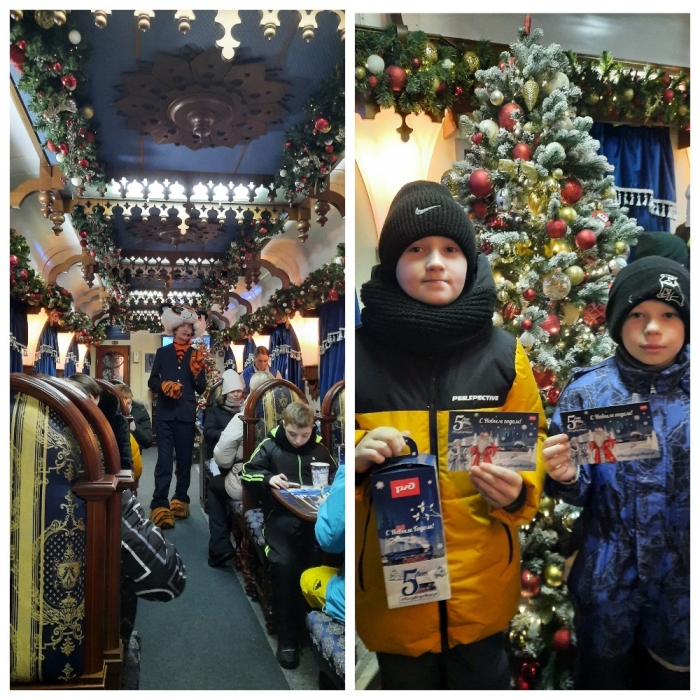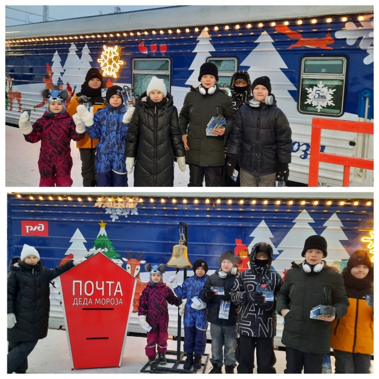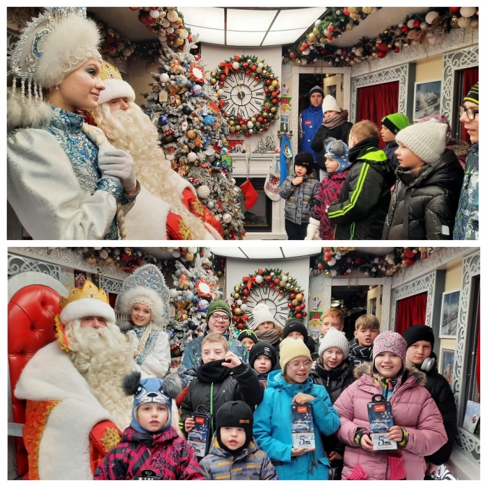 Яркие, красочно расписанные вагоны поезда, звучание песен о нашем родном крае, добрые и весёлые помощники Деда Мороза создали сказочную атмосферу, и ребята с удовольствием включились в праздничную кутерьму с танцами и песнями, звонили в колокол и интересовались почтой Деда Мороза.