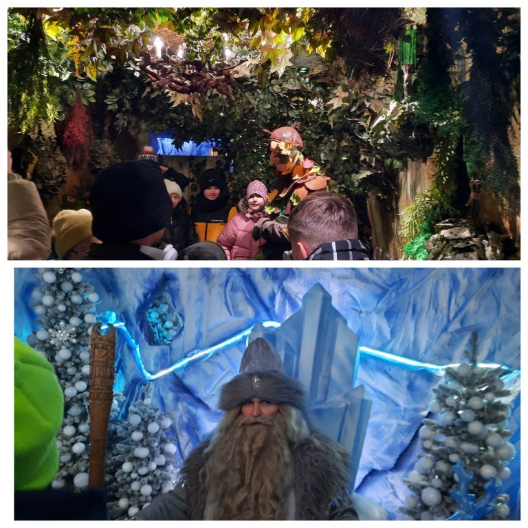 Путешествие по волшебному поезду началось со встречи с Шуршиком, который расспрашивал ребят о лесных дарах северного края и рассказал, как добраться до приёмной главного волшебника. Получив первую «фишку», ребята продолжили участвовать в квесте, встретившись с Дедом Трескуном. Сказочный герой, интересовался зимними развлечениями юных гостей. За множество интересных ответов участники получили вторую «фишку» и волшебный посох.