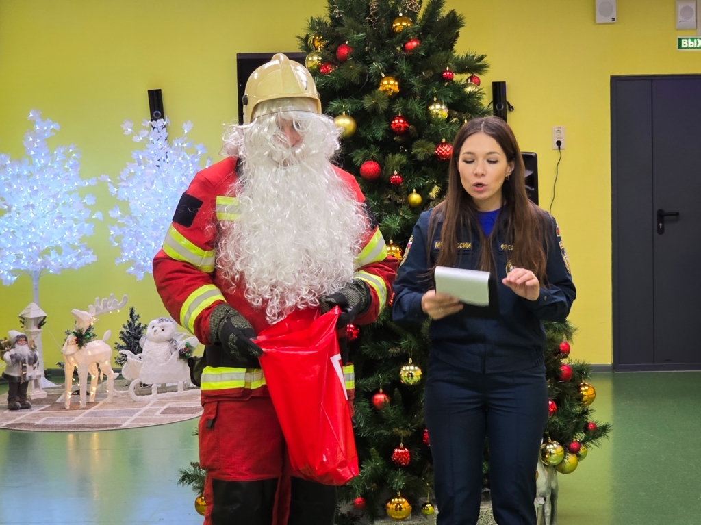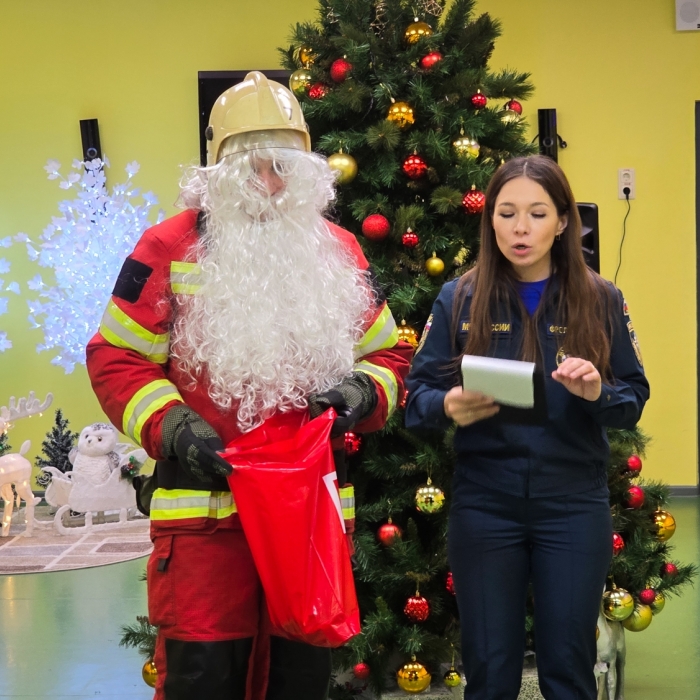 Мероприятие было не совсем обычным: сотрудники Главного управления выступили в роли Пожарного Деда Мороза и его помощников и проверили детей на знание правил безопасности.