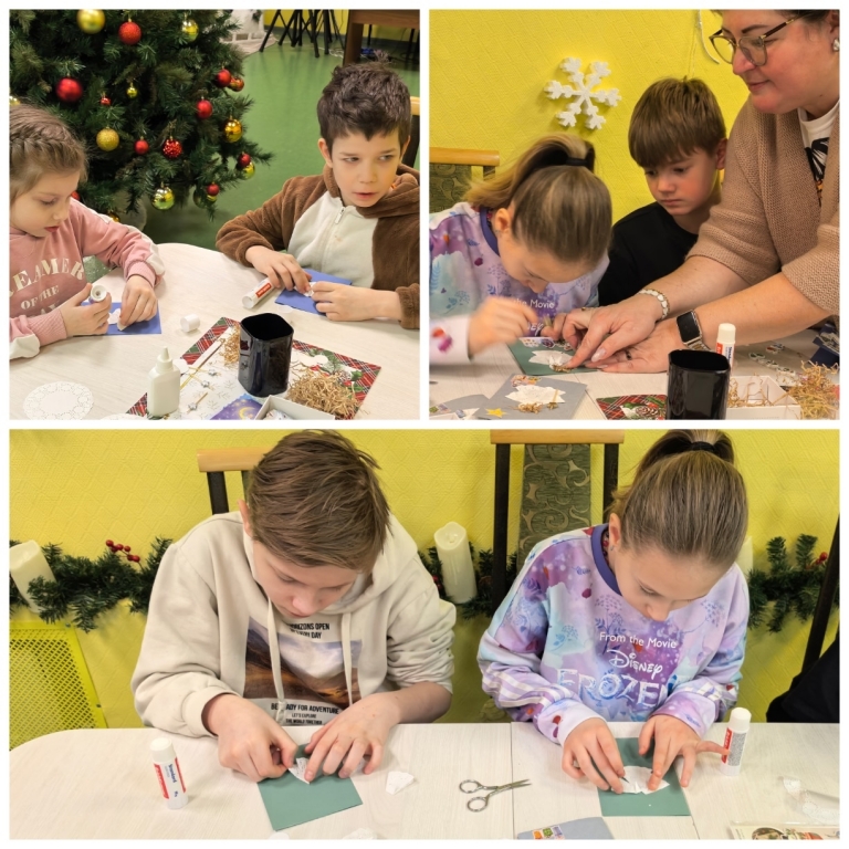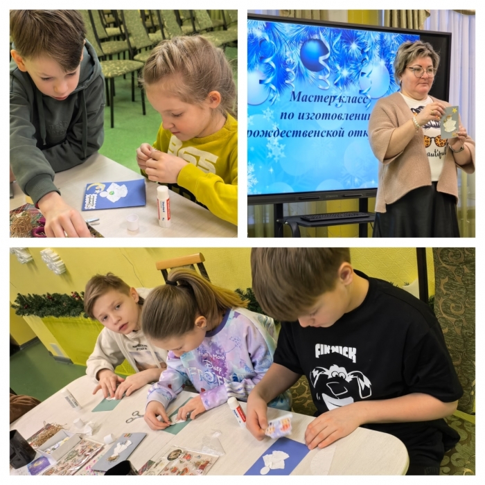 На творческом занятии ребята погрузились в атмосферу Рождества. Они узнали, как появились новогодние и рождественские открытки. Затем пришло время творчества. Вооружившись картоном и цветной бумагой, воспитанники с увлечением создавали уникальные открытки. Особое место на занятии занял рассказ «Рождественские пожелания». Из него ребята узнали: о добрых ангелочках, о силе добрых слов и пожеланий, способных согревать сердца даже в самые холодные дни.
