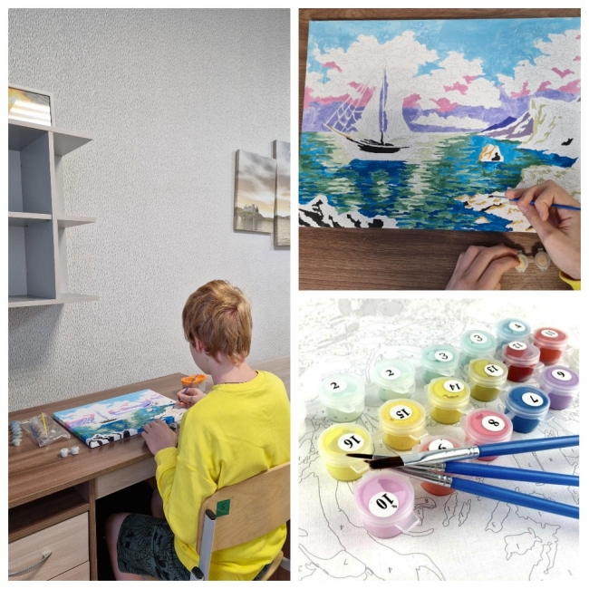 Воспитанники Центра «Журавушка» с большим интересом занимаются разными видами творчества. Одним из любимых видов изобразительного творчества, является рисование картин по номерам. Елена, Даниил, Артём, Гриша создали уже несколько таких шедевров.