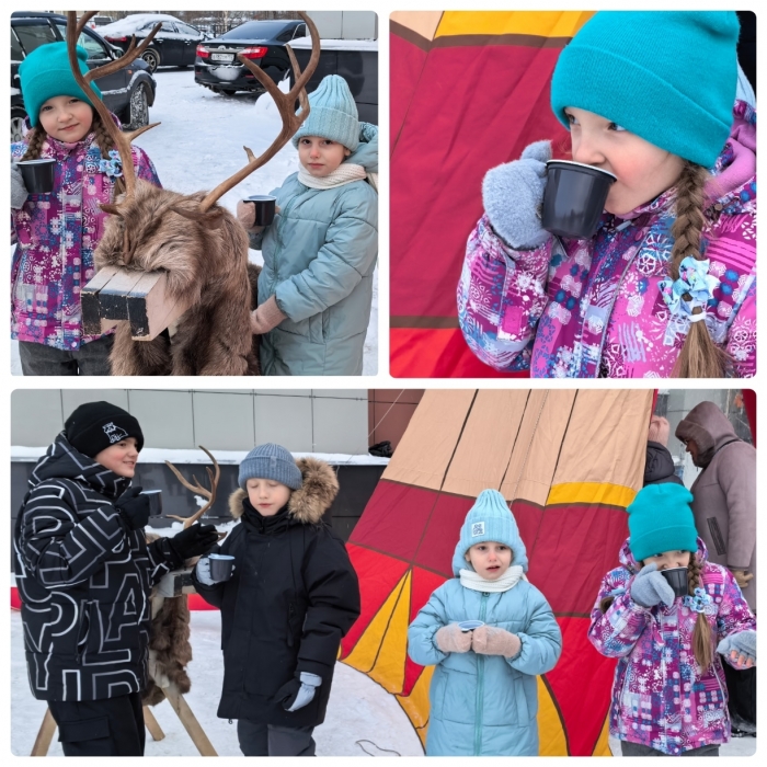 После активных игр всех согревал душистый, горячий северный чай!