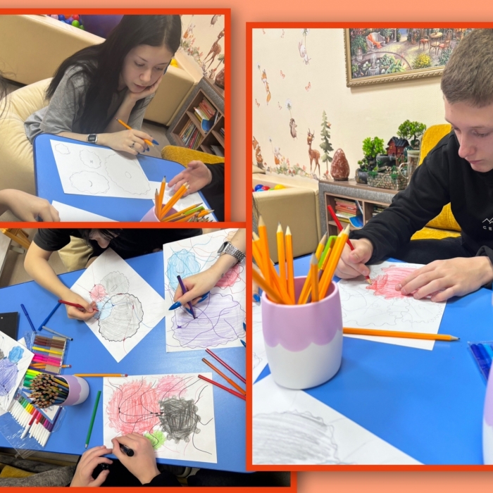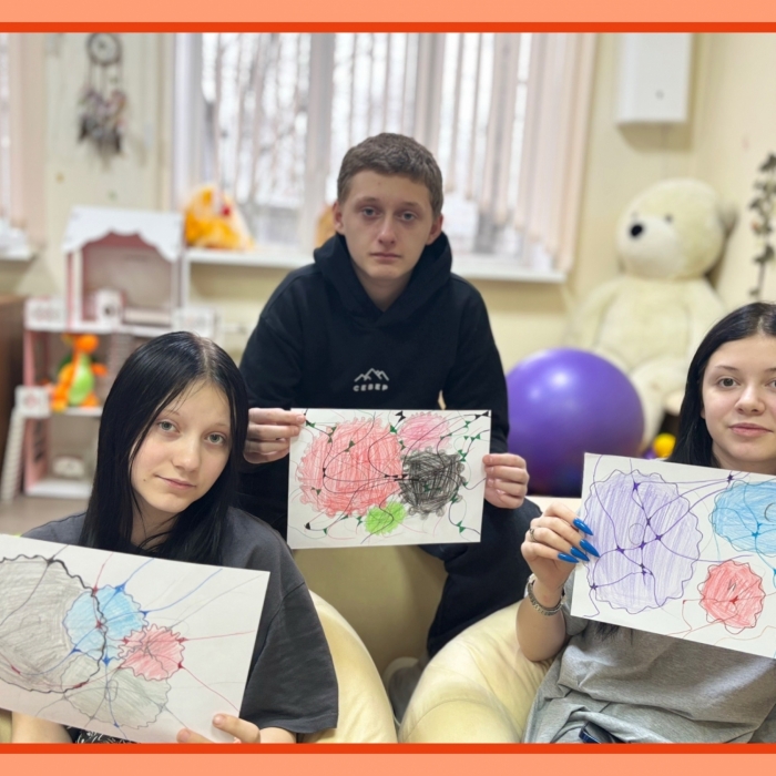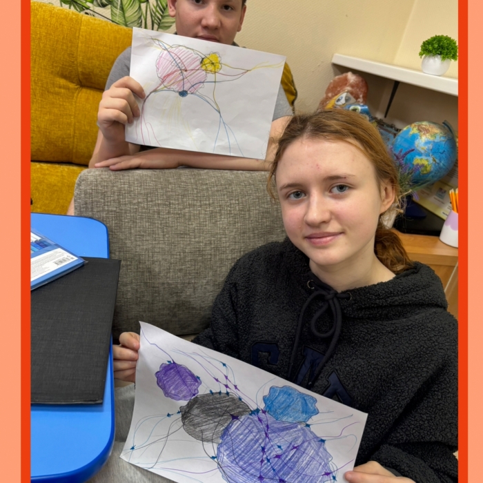 На занятие арт-терапии с педагогом-психологом дети погружаются в мир нейрографики. Здесь яркие образы становятся зеркалом души, где зигзаги и волны отражают не только радости, но и глубокие переживания. Игра с цветами и формами пробуждает воображение и учит мыслить свободно. Нейрографика помогает детям расслабиться, избавиться от тревог и окунуться в мир творчества. В дружеском кругу этот метод становится мостом для общения, где каждый делится своими мыслями и чувствами, учится понимать и поддерживать друг друга, создавая вместе танец души на бумажном холсте.