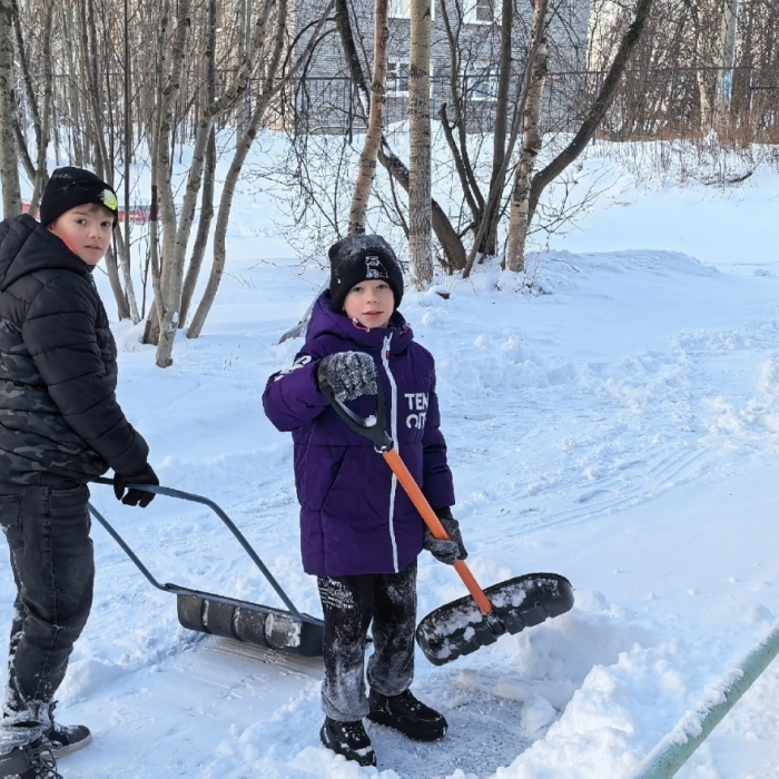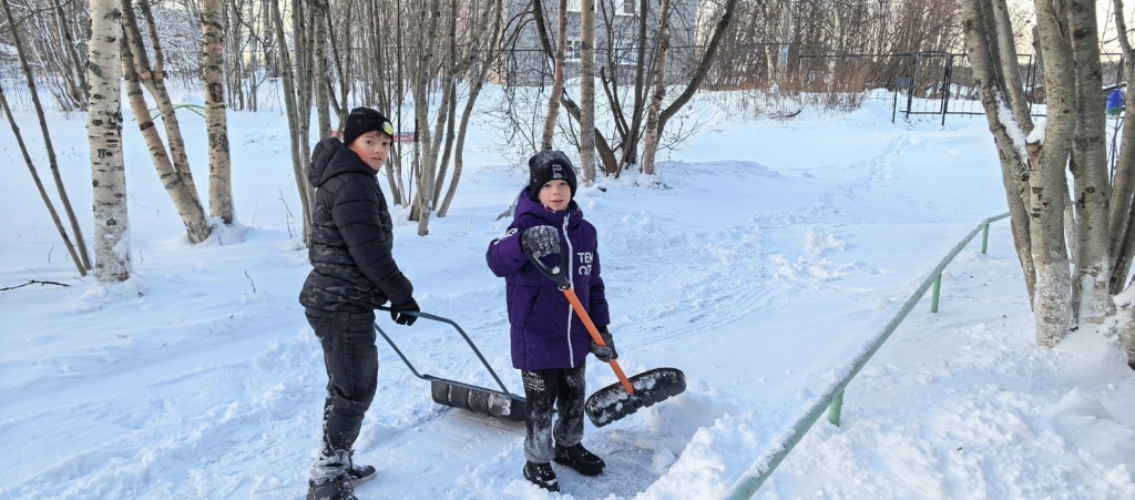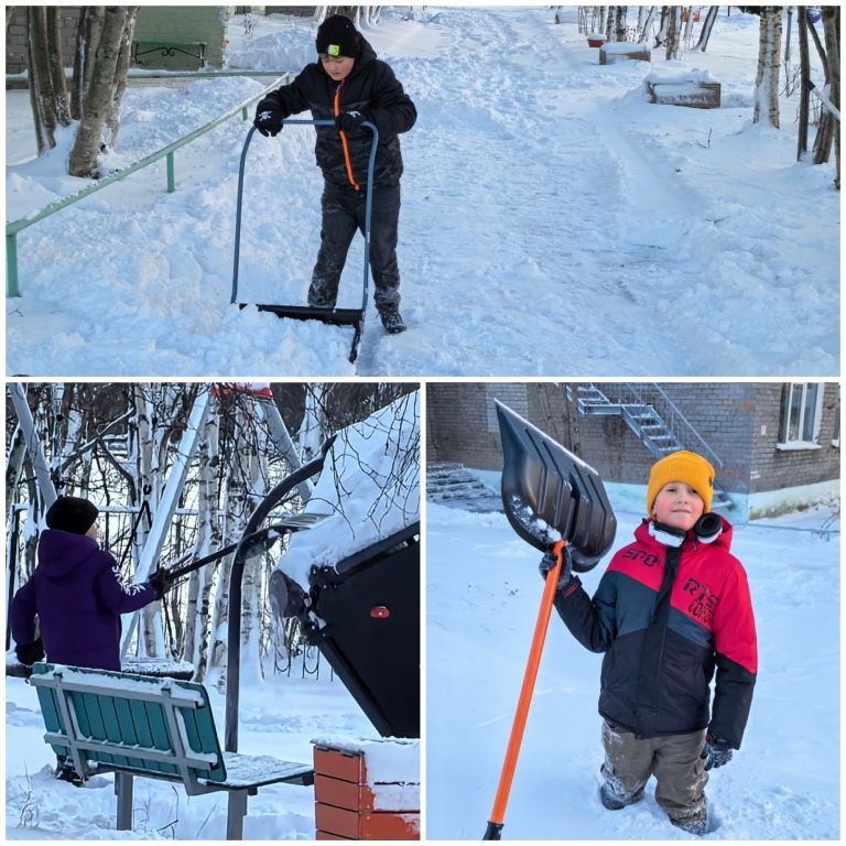 На календаре ноябрь, а за окном снег усыпал всю территорию «Журавушки». Одним из эффективных методов внедрения трудового воспитания является проведение уборки снега в Центре. Трудовой десант воспитанников вышел на уборку снега, после обильного снегопада. С хорошим задором, дружно все вместе убирали снег, расчищали дорожки, не забывая, при этом, весело шутить. Порадовала и погода: было тепло и светило яркое солнце. Работа у всех спорилась, и время пролетело незаметно быстро. В конце приятно было увидеть результаты своего труда.