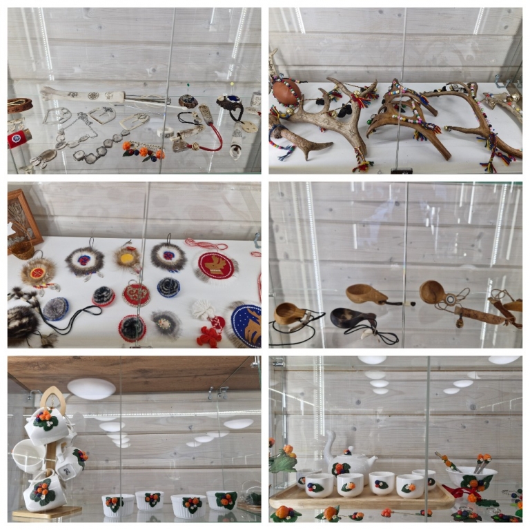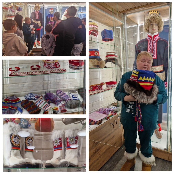 Воспитанники прикоснулись к древнему саамскому искусству, посетив выставку декоративно - прикладного творчества, на которой были представлены работы ведущих мастеров коренных народов севера. Это традиционные саамские костюмы, головные уборы, ремни, пояса, рукавицы, обувь. А также изделия саамских ремесел из рога, дерева и кожи: женские сумочки, кошельки, игольницы.