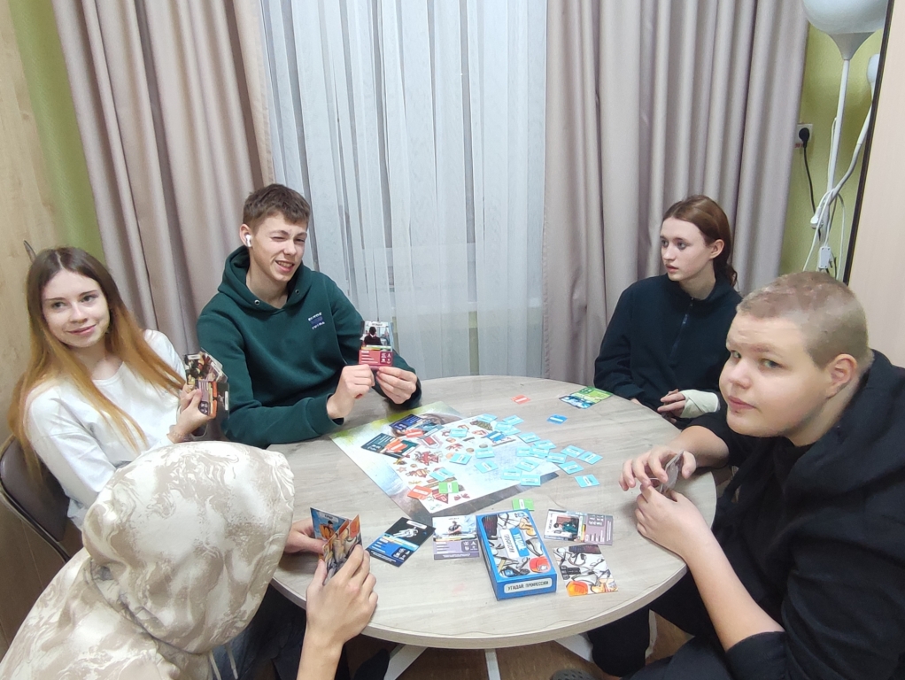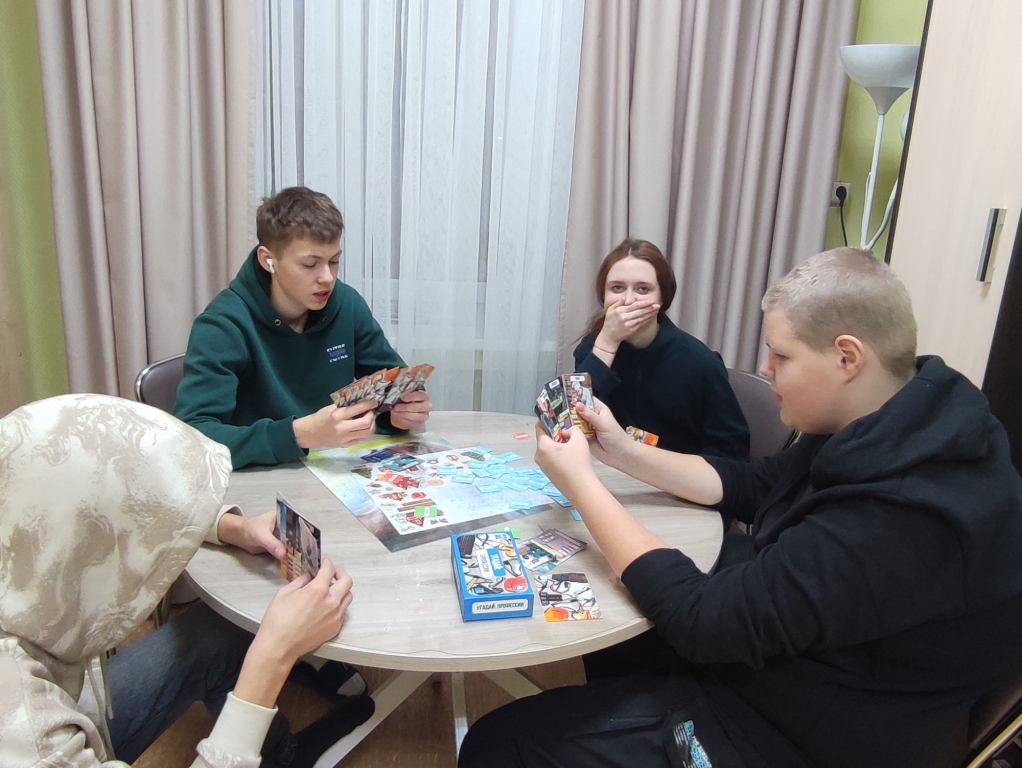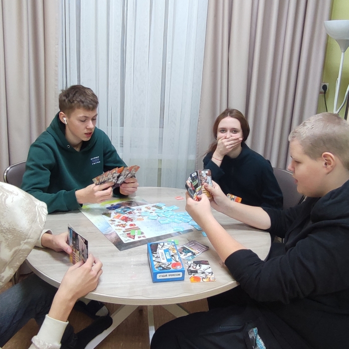 Недавно у нас прошел вечер настольных игр. У старших воспитанников темой вечера стала настольная карточная игра "Угадай: Профессии». В ходе игры ребята вспомнили и закрепили уже имеющиеся знания о профессиях, выявили эмоциональное отношение к разным профессиям, научились выделять профессионально важные качества профессий.