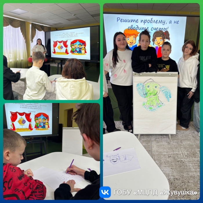 В ГОБУ «МЦПД «Журавушка» в ходе тренинга воспитанники слушали себя и своих друзей, а также совместно рисовали «Маленького слоненка». Этот процесс помог им избежать провокационных конфликтов и научиться разрешать их мирным путем. Ребятам понравилось искать мирные решения, а не создавать новые проблемы.