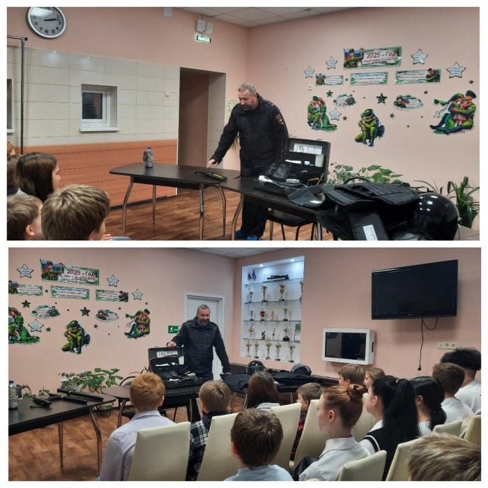 В ходе беседы Константин Николаевич в доступной форме рассказал ребятам о работе различных подразделений полиции, раскрыл суть и значение профессии полицейского. Ребятам были продемонстрированы средства защиты, используемые полицией МВД России, инструменты и материалы для работы криминалистов.