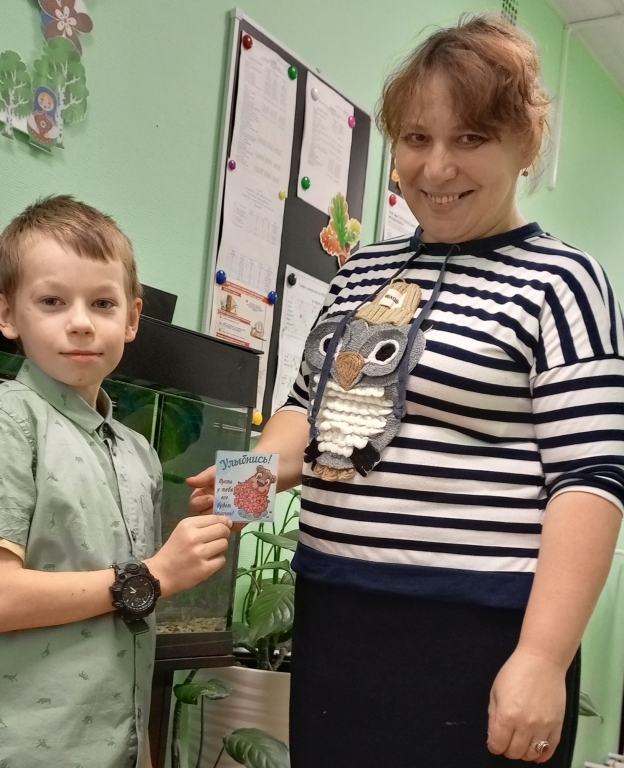 Главным атрибутом акции стали открытки. На каждой из них яркий рисунок, стихотворение или просто доброе пожелание. Дети с трепетом вручали их своим друзьям, близким, знакомым и просто прохожим людям, сопровождая каждый подарок искренней улыбкой.