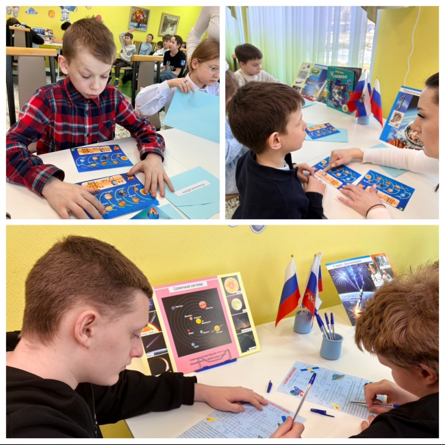 Разгадывание космических кроссвордов, ребусов, решение примеров объединило ребят в дружной творческой работе. Все вместе ответили на вопросы викторины и показали свои знания о Космосе.