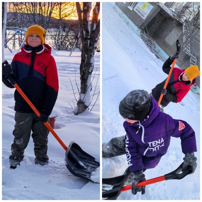 На календаре ноябрь, а за окном снег усыпал всю территорию «Журавушки». Одним из эффективных методов внедрения трудового воспитания является проведение уборки снега в Центре. Трудовой десант воспитанников вышел на уборку снега, после обильного снегопада. С хорошим задором, дружно все вместе убирали снег, расчищали дорожки, не забывая, при этом, весело шутить. Порадовала и погода: было тепло и светило яркое солнце. Работа у всех спорилась, и время пролетело незаметно быстро. В конце приятно было увидеть результаты своего труда.