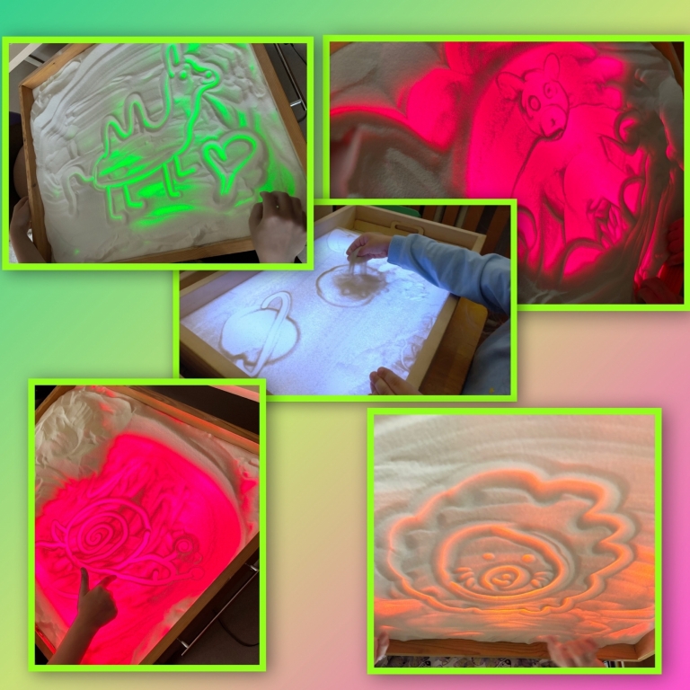 В ГОБУ "МЦПД "Журавушка" воспитанники создают песочные миры и удивительных животных. Эти волшебные картины становятся отражением их внутреннего мира, помогая планировать, принимать решения и воплощать мечты. Ребята учатся замечать детали, творить и работать в команде, создавая удивительные композиции.