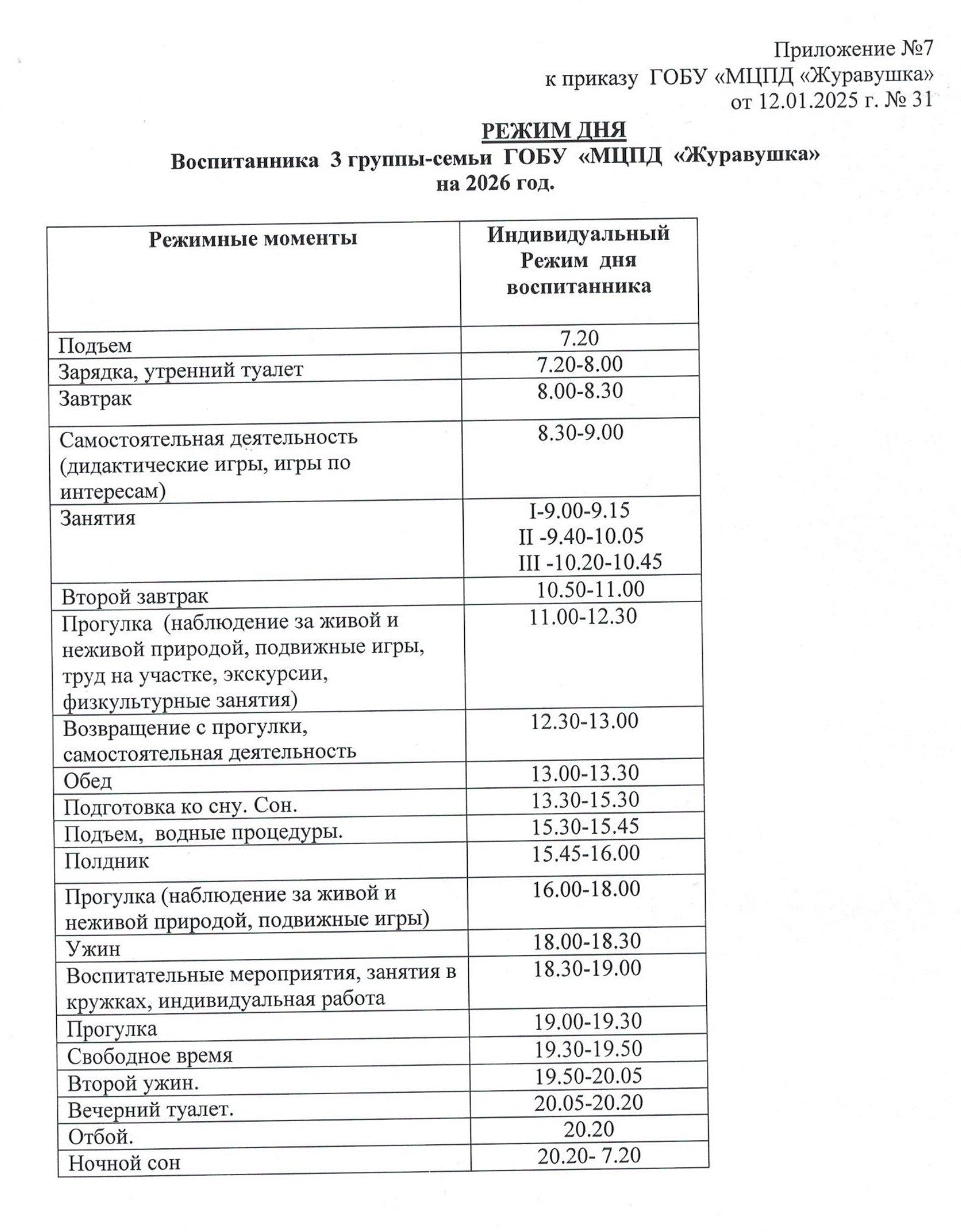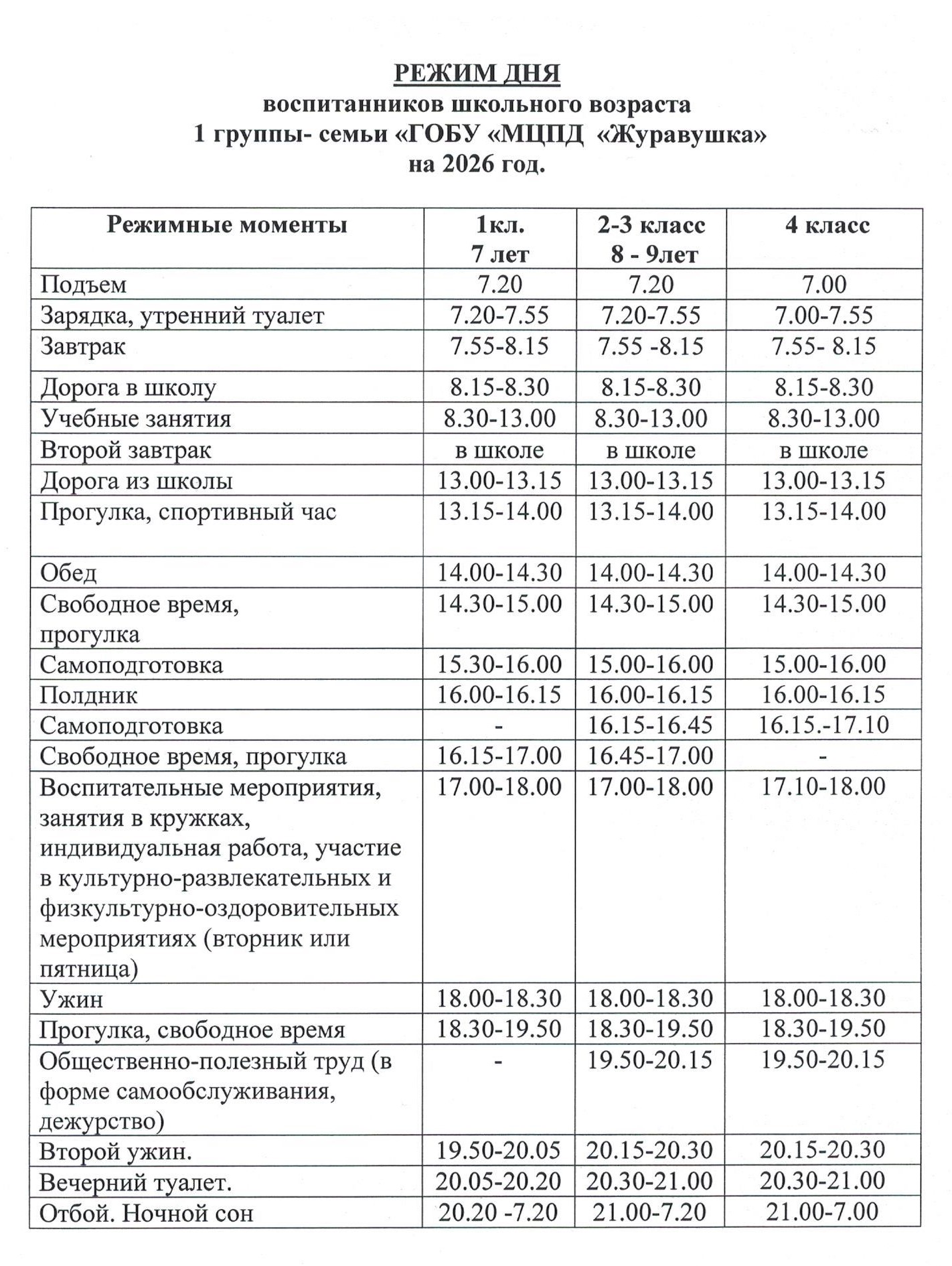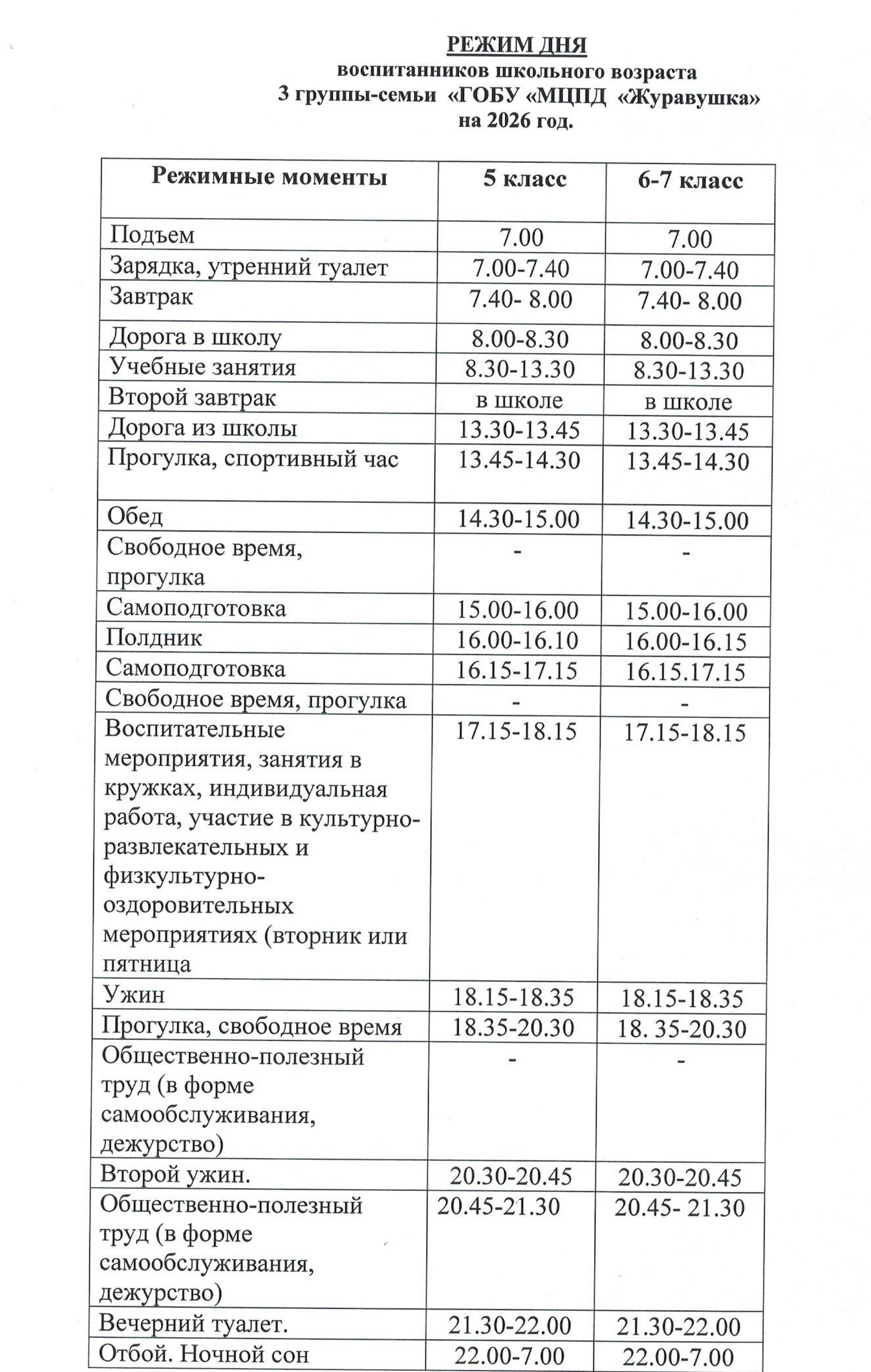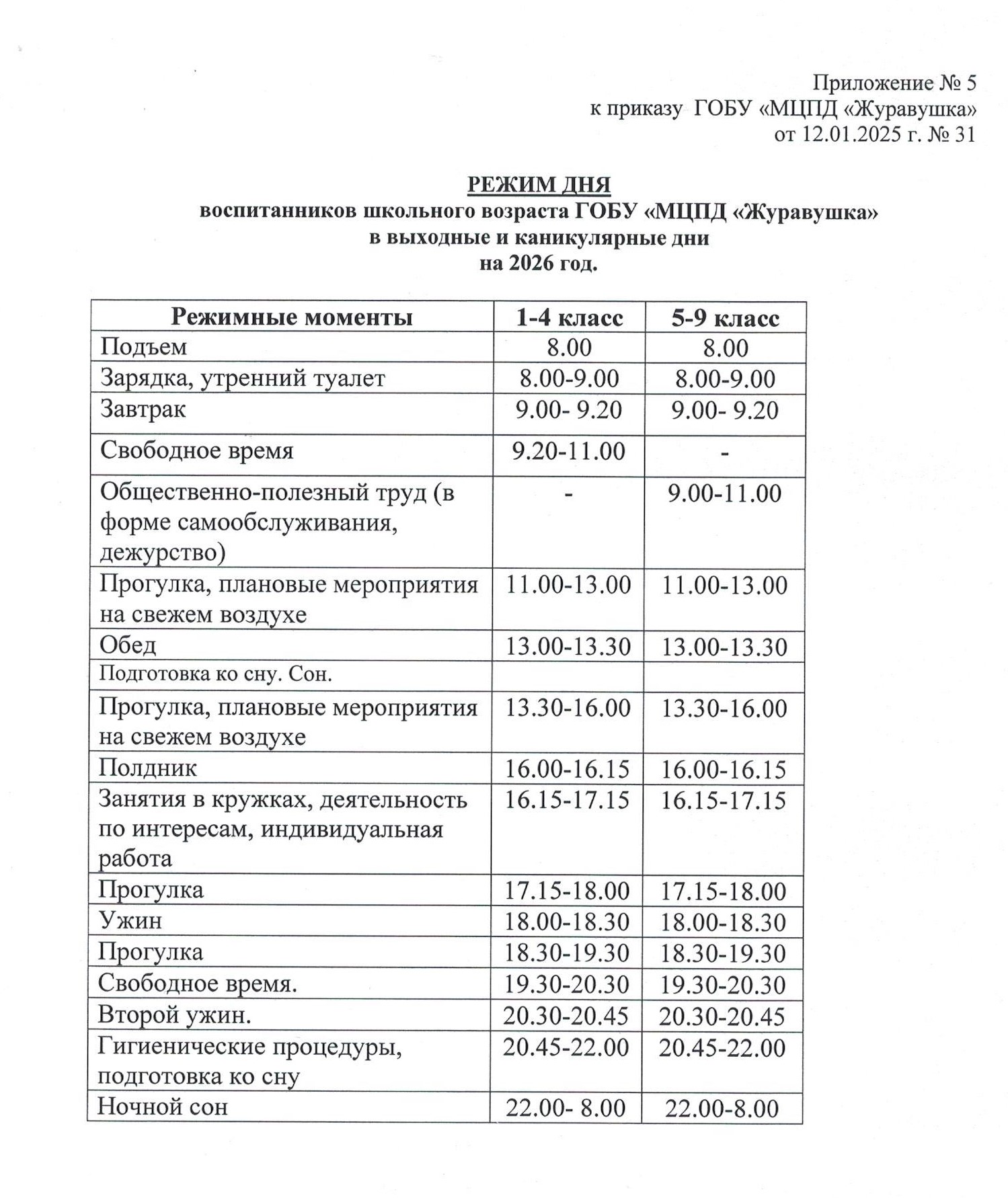 Режим дня воспитанников ГОБУ "МЦПД "Журавушка" на 2025 год