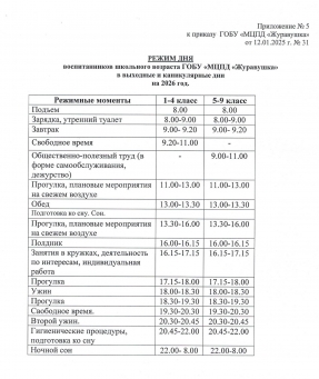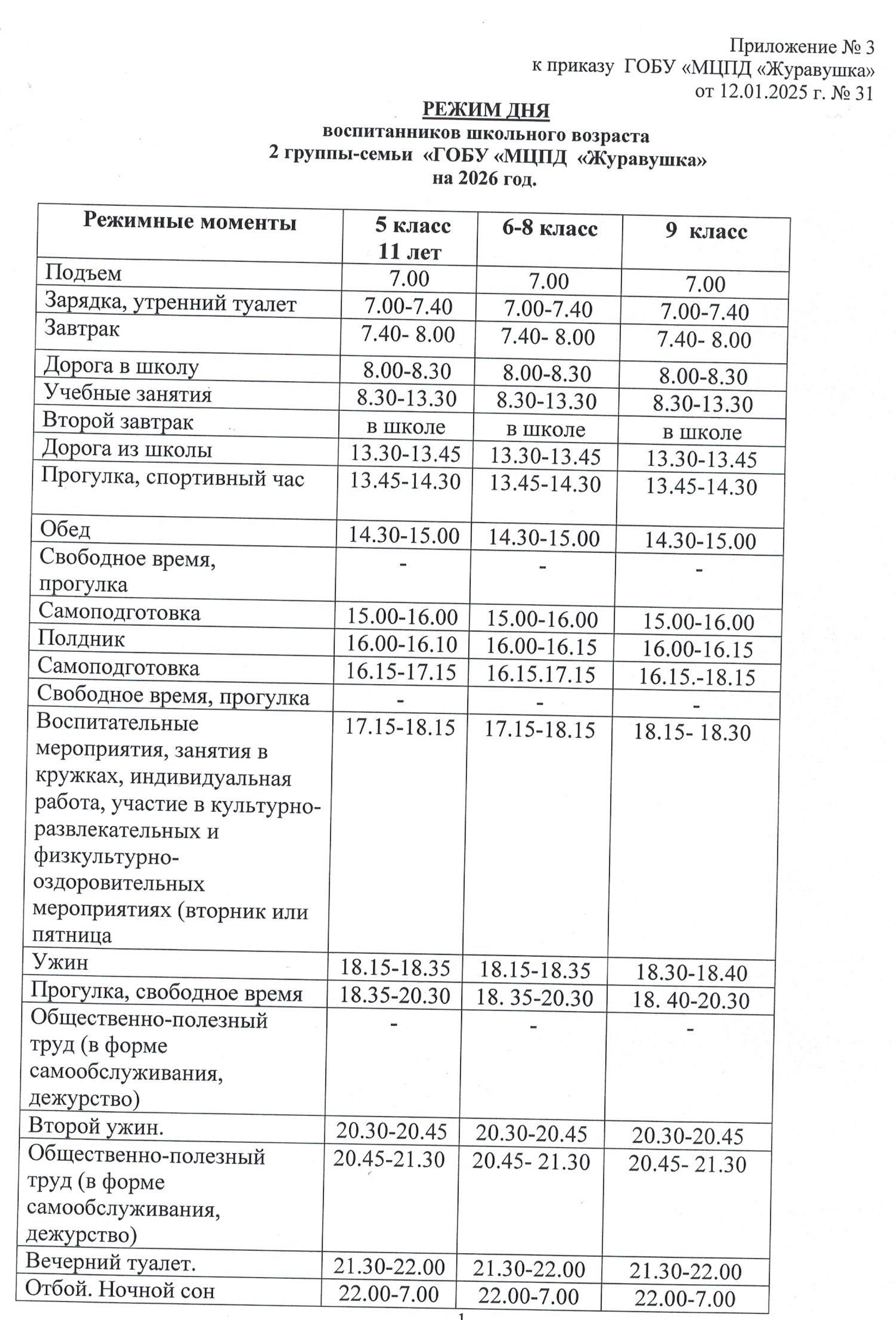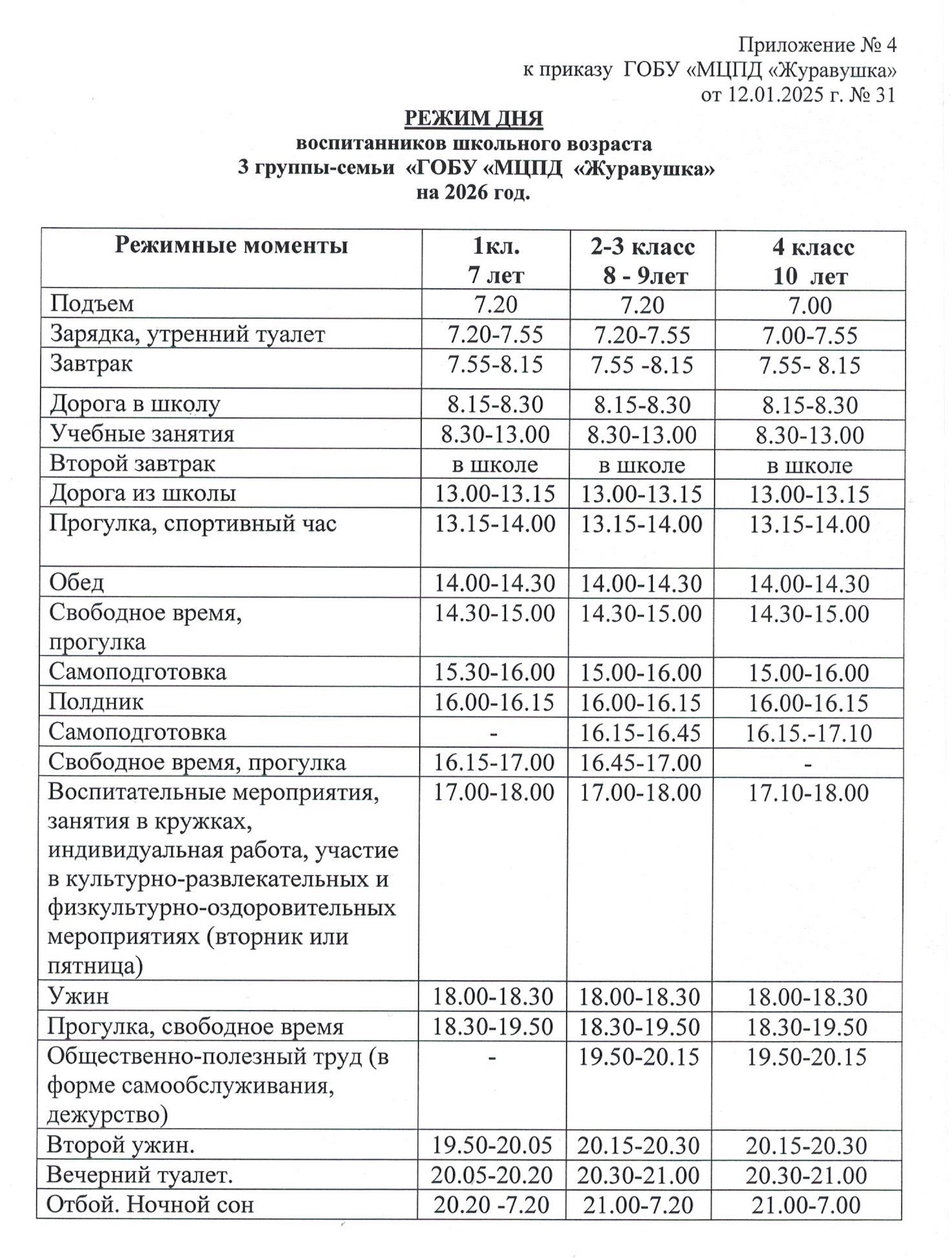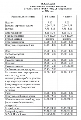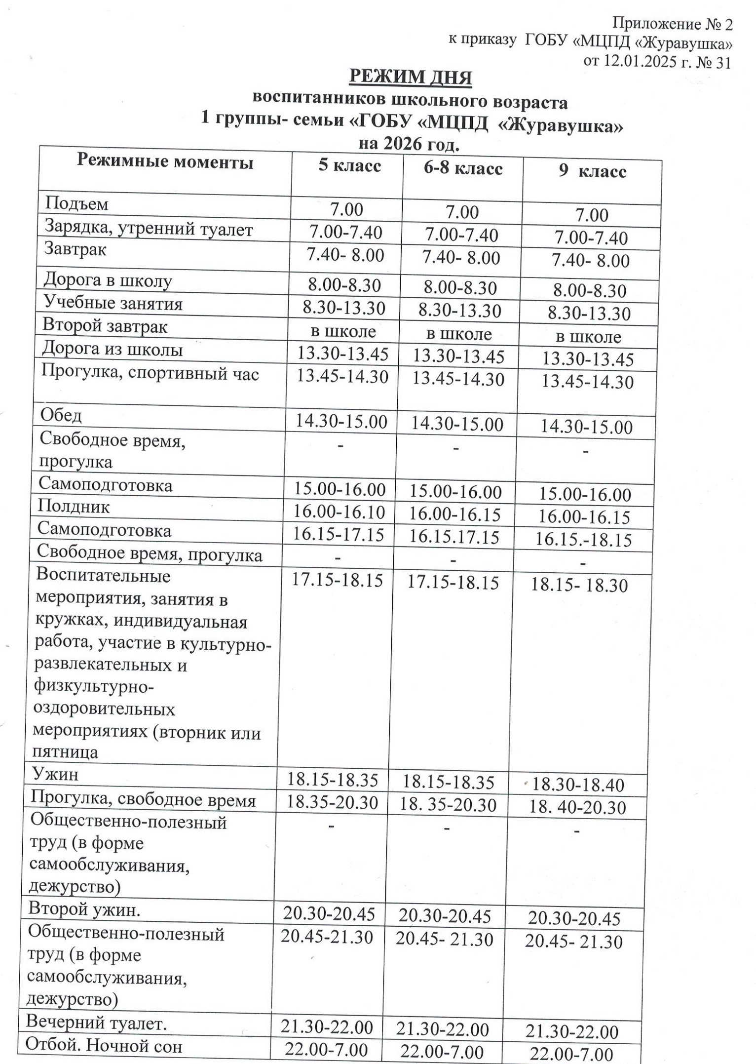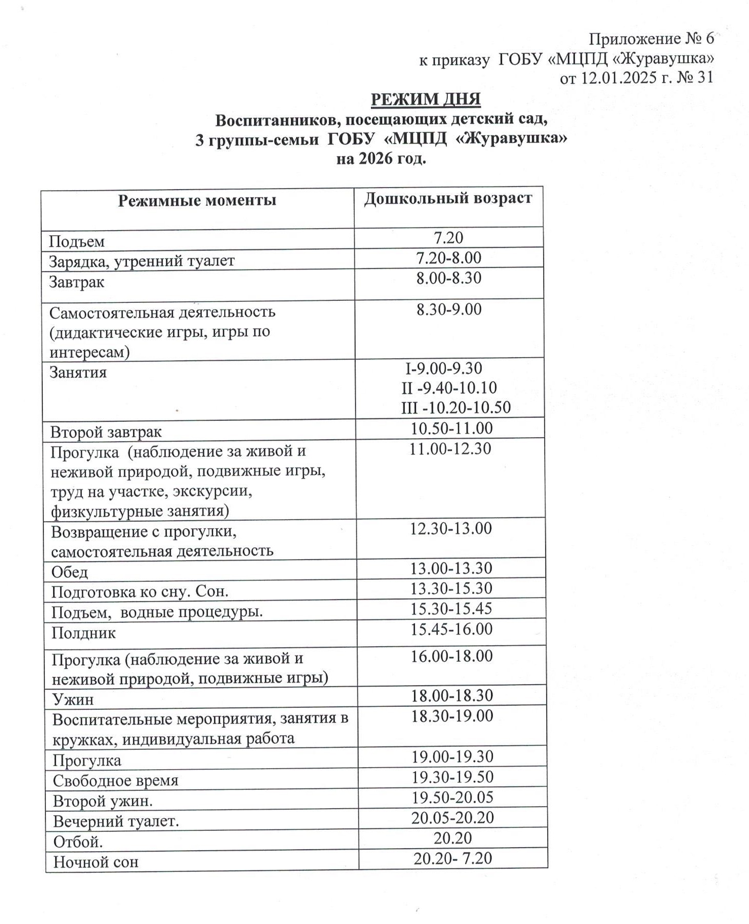 Режим дня воспитанников ГОБУ "МЦПД "Журавушка" на 2025 год